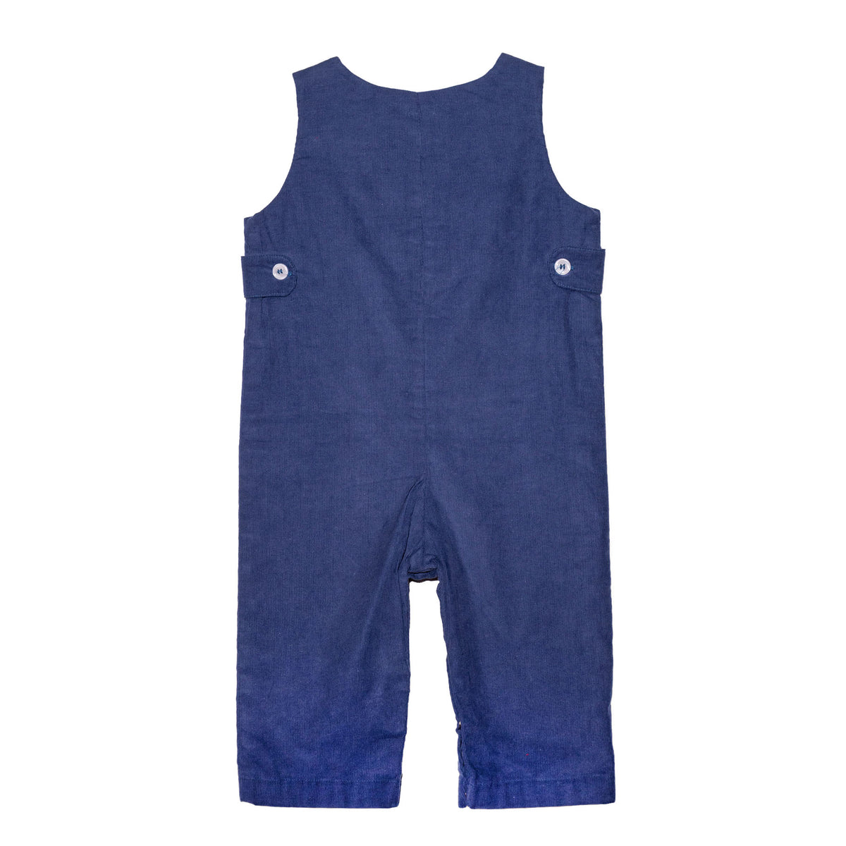 This classic, corduroy longall in navy makes dressing little ones a breeze. Adjustable button straps and side tabs offer lots of room. Fully lined. Snap closure at leg.